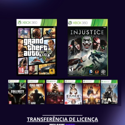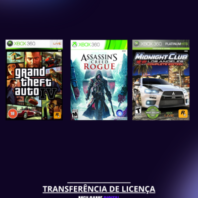 GTA 5 + GTA 4 Liberti City + Assassins Creed Rogue + Assassins Creed 3 + Assassins Creed 4 + Lost Planet 3 + Saints Row 1 e 2 + Lost Odyssey + Skate 3 + Tropico 4 + Port Royale 3 + Call of Duty Black ops + Fable – XBOX 360 – Midia Digital TRANSFERÊNCIA DE LICENÇA