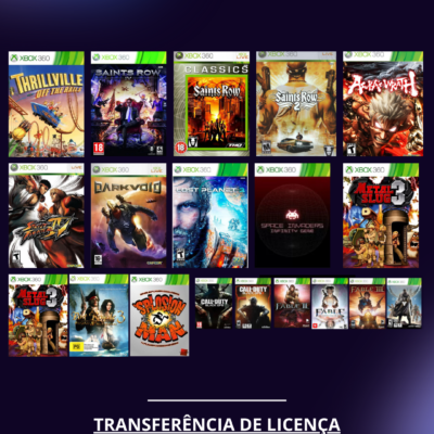 Saints Row + Saints Row 2 + Saints Row 4 + Asuras + Street Fighter 4 + Darkvoid + Lost Planet 3 + Space Invader + Metal Slug 3 + Port Royale 3 + Splosion Man + Thrillville + Call of Duty Black ops 1 e 3 + Fable – XBOX 360 – Midia Digital TRANSFERÊNCIA DE LICENÇA